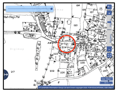 Possible location of Loverock’s Yard and Hodgkin’s Farmhouse in Horninglow (from Edina Digimap 1880)