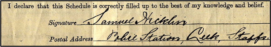Samuel Hicklin’s signature from the 1911 census