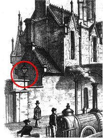 To make connections easier, a new station (Lichfield Trent Valley) was built by the London North Western Railway in 1871 at its current location. This is shown on the 1882 Ordnance Survey Map in figure 3 and there can be seen to be station buildings on both the low level LNWR line and the upper level South Staffordshire line. Interestingly the old LNWR station building can still be seen on the down side of the line next to a set of sidings, although that on the up line has been obliterated by other sidings. This building survived into modern times, as can be seen on the 1970 Ordnance Survey map of figure 4. The realization that this building was around till then made me take a more careful look at some 1960s train photographs, and I was gratified to find a number of shots of the building, which are shown in figure 5. Those of figures 5a and 5b are taken from the Trent Valley Road bridge over the railway line, and those of figures 5c and 5d from track level on the west of the bridge. Clearly here the focus of the photographers was on the locomotives rather than the building, but they do show that the original station building survived in its more or less original form until modern times.  Perhaps one can even see a surviving gas light column – see the enlargements of figure 6 – although here I may be confusing a signalling column with a lamp stand.