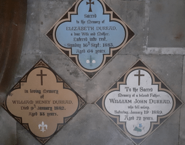 It has been mentioned that all William John’s children were baptised at St Michael’s parish church, and his obituary specifically mentions his ongoing involvement with the activities there. A picture of the church after the ill-fated restoration of the 1840s is shown below. He was a Churchwarden there in the 1850s. The registers of the parish reveal a rather curious incident in 1869. Emma Helen Durrad, then aged 16, was recorded as having been baptised as an adult at a private ceremony, and this was entered in the registers. The incumbent at the time, James Sergeantson, must have been aware from a register entry of 16 years before by his predecessor Thomas Gnossall Parr that she had already been baptised as an infant, and thus this was certainly in breach of canon law. Why and where the baptism took place, and why Sergeantson agreed to enter it into the register is not clear. Perhaps she had become involved with a non-conformist body that insisted on adult baptism, and the parents were trying to regularise this and perhaps put the Rector under some pressure to make an entry in the register?