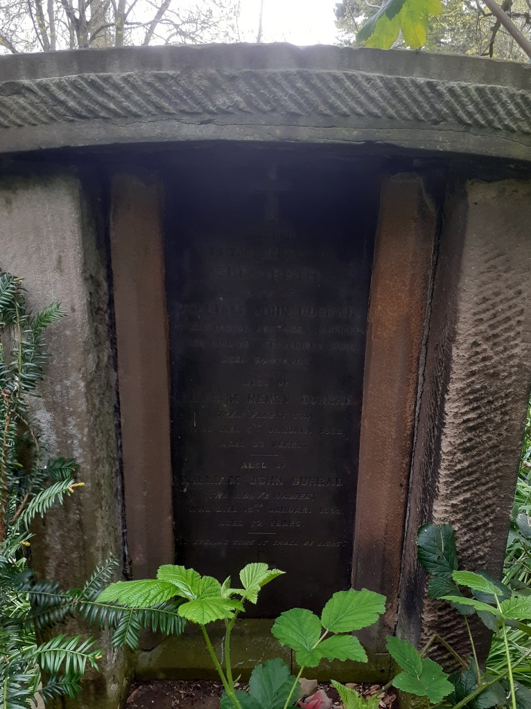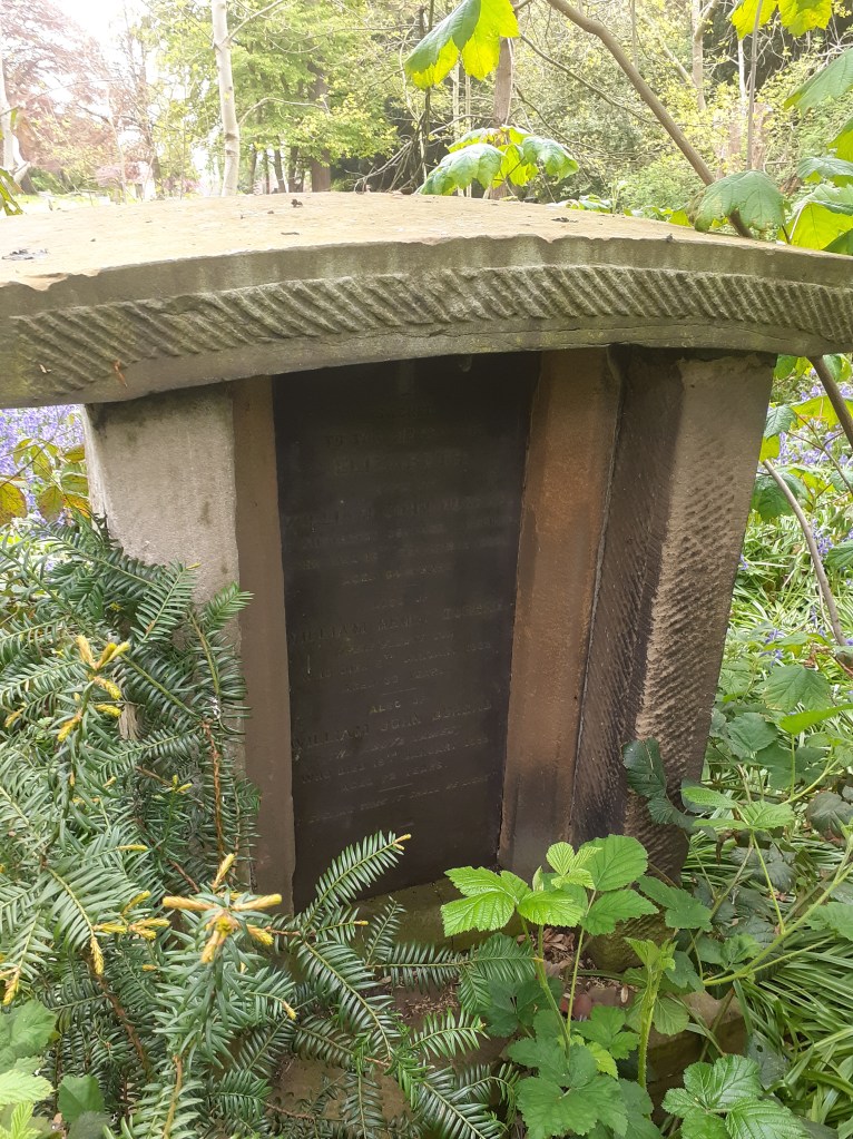 William John, his wife Elizabeth and his son William Henry are buried together in one grave in the graveyard of St Michael’s church. It is currently (May 2021) somewhat overgrown and difficult to access. Nonetheless its design is rather unusual as can be seen below.