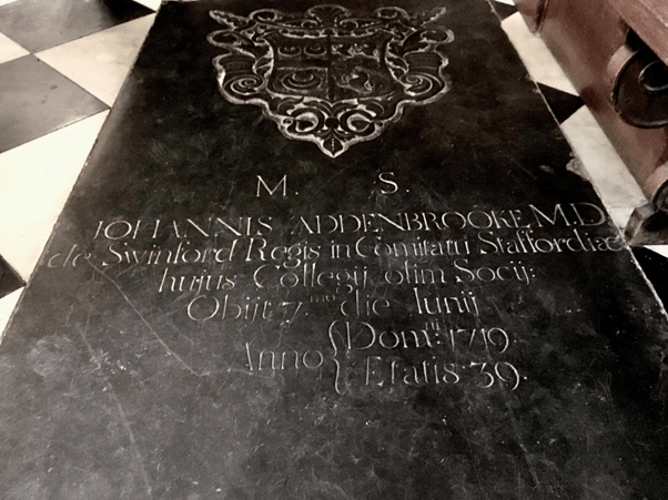 The Addenbrooke family members were also major landowners in the Kingswinford area. Jeremiah Addenbrooke (1701-1773) married Hannah Hodgetts in 1726, one of the two daughters of Thomas Hodgetts (1678-1740), the vicar of Kingswinford mentioned above. The most famous of the Addenbrooke family, John Addenbrooke, the student and fellow of St Catharine’s Hall in Cambridge who founded the Cambridge hospital was the son of Samuel Addenbrooke (1642-1710) shown in the tree, but, despite his fame, he is not a major character in Kingswinford history.