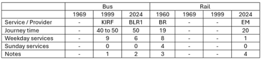 So what can one conclude from the data presented above? Firstly with regard to rail services, it is clear that there have been major improvements in connectivity to the east and the west, with reducing journey times and increased frequencies. That being said, current reliability and punctuality is poor and requires improvement. Services to the north and south have however seen major degradation and are now only represented by one journey a day to London. With regard to bus services, in some sense these have seen little change, with journey times and frequencies on most routes remaining broadly constant, at least on weekdays. That being said, there have been some losses – to Grantham and Nottingham in particular, Sunday services are non-existent and evening services have been severely cut back, Perhaps more importantly the service times and frequencies that were acceptable in the 1960s now simply represent a very basic service that is not attractive to most car-owning travelers.