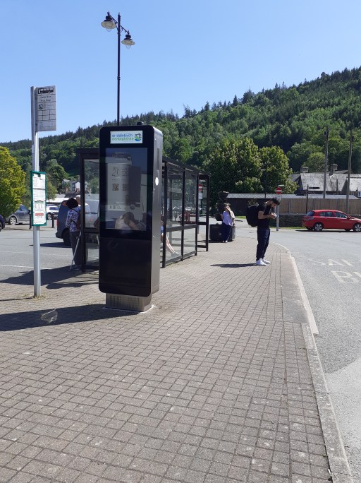 Corwen was very different. Here there are proper interchange facilities with good, real time information, a solid shelter and space to wonder in the bus stop area. I think I could make out a toilet block too, but didn’t investigate it. This is a nice facility. It would probably benefit from not being branded as “Corwen Car Park” – although it is indeed in the centre of a car park. It is much better than such a name would suggest. My only worry would be that the shelter would not be large enough for all those changing vehicles on a wet day. But this is how it should be done.
