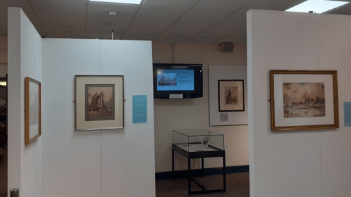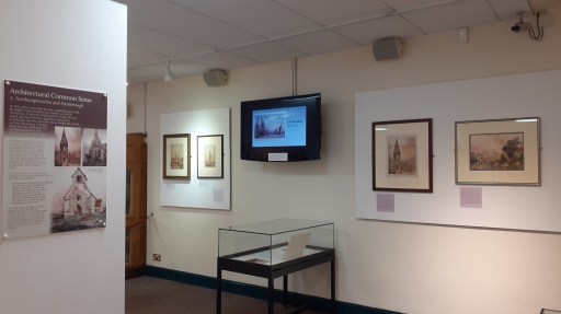 The simply produced catalogue contained brief details and a small photos of all the pictures that were planned to be exhibited. In the event a small number were not hung due to space limitations. These were shown as a slide presentation on a screen in the exhibition area, together with pages from an 1830 Album (see catalogue for description) and a selection of other East Midlands paintings.
