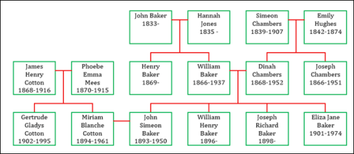 A very simplified family tree is shown in Figure 1, containing the names of most of those mentioned in the diaries, together with some who are not mentioned, but are important in the family story. We will consider specifically the diary entries relating to William’s wife Dinah and his four children John Simeon, William Henry, Joseph Richard and Eliza Jane. We then consider entries relating to other in Figure 1.