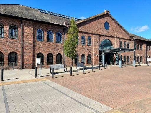 Figure 1. The derelict John Bradley factory in the early 2000s and the renovated building, now the Lion Health Centre