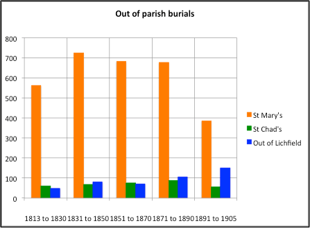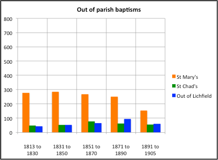 There is of course further work that could be done of this type. Perhaps the most obvious extension would be to do the same sort of analysis for the registers of St. Mary’s and St. Chad’s as the three churches obviously have significant interaction. This would be quite possible as for the period covered in this blog the registers are again available in .rtf format that can be manipulated in spreadsheets. Maybe one day in the near future I will summon up the energy to do this.