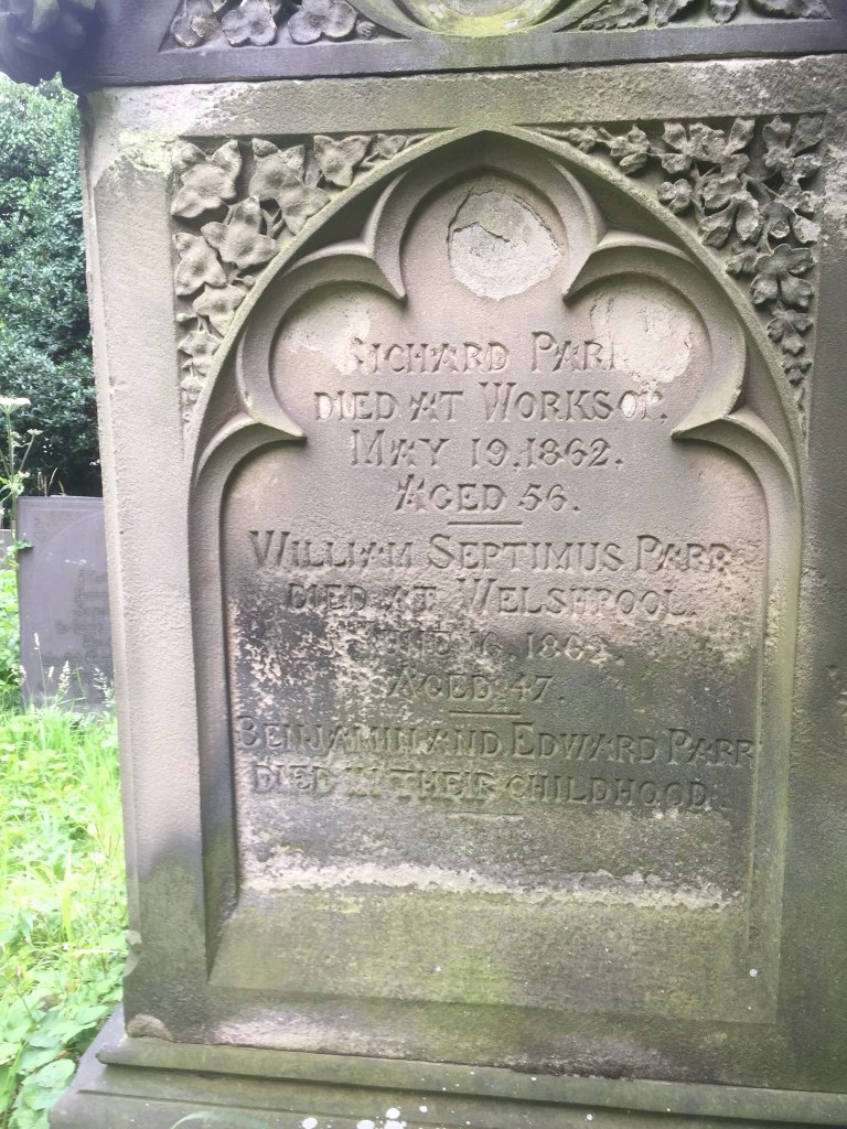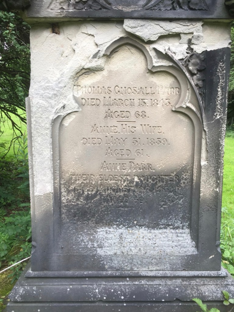 The grave memorialParr family membersThomas Gnossall ParrThomas Parr Senior and his wifeThe Parr grave in St Michael’s churchyard