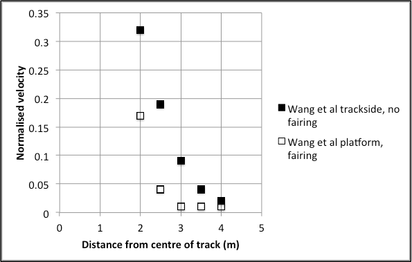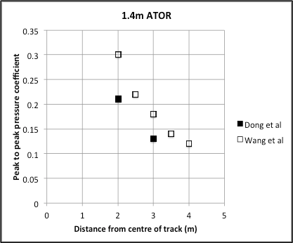 Liang et al (2020a) and Liang et al (2020b) measured loads on a bridge over the track and on the platform screen doors in stations and the roofs of enclosed stations, using moving model tests and LES or IDDES CFD calculations. Good agreement was found between the physical and numerical modelling in both cases. For the bridge case, loads were measured at different positions across the bridge, for different bridge heights. There were no observable Reynolds number effects on pressure coefficients and good agreement was found with the CEN data collation. For the station case, good agreement with the CEN correlations was found for the station roof measurements, but the data for the various platform screens was widely scattered about the CEN value.