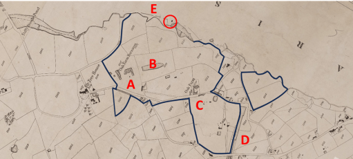 Figure 7. Extract from Oak Farm Estate map of April 1849