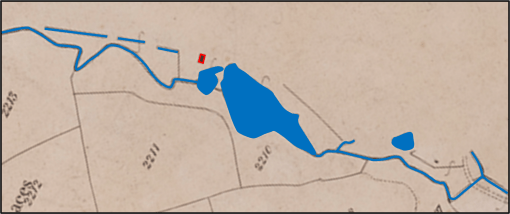 The 1882 situation is mirrored on the current Ordnance Survey map (Figure 10) and satellite view (Figure 11), where no trace of the mills and mill pools can be seen.